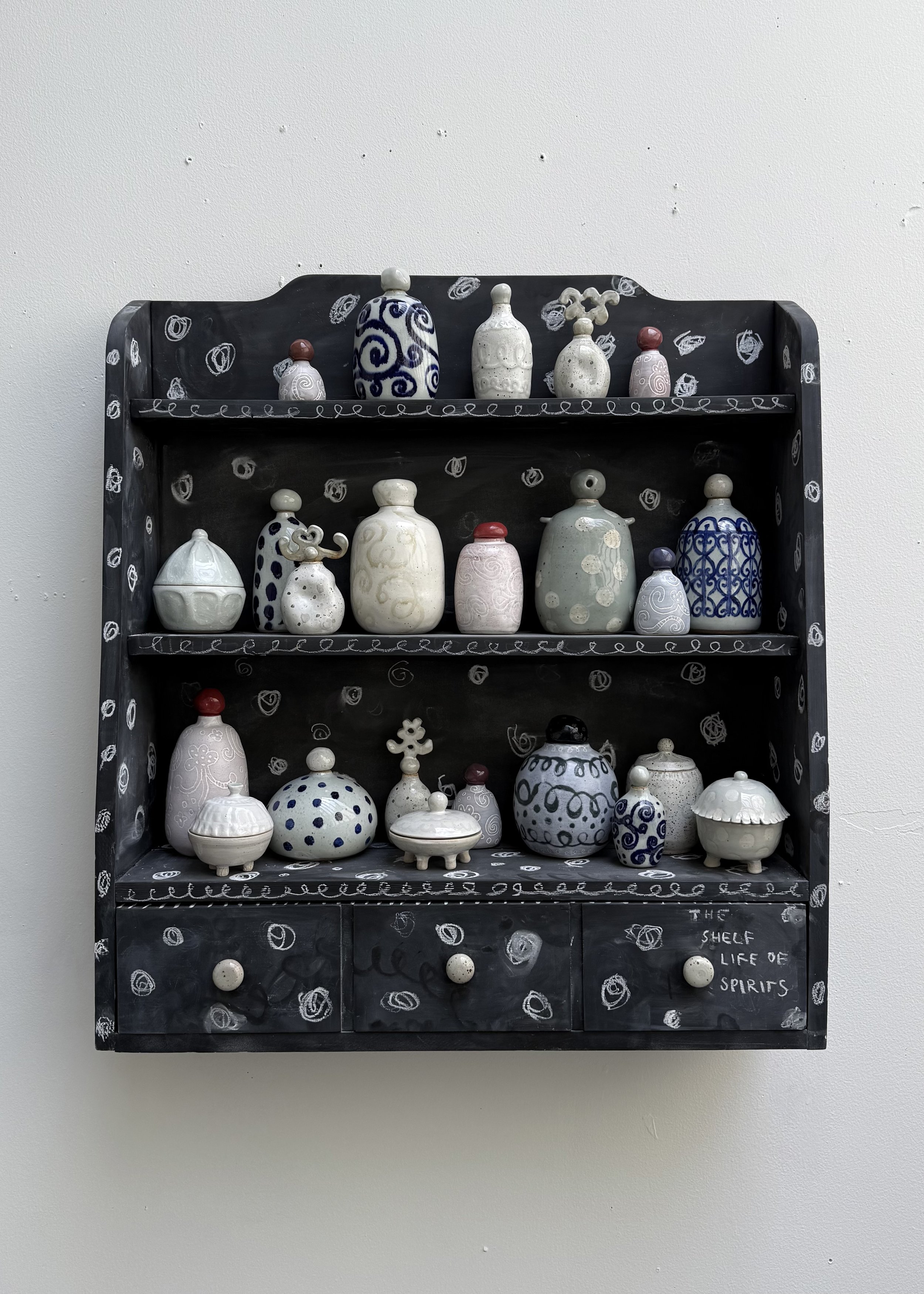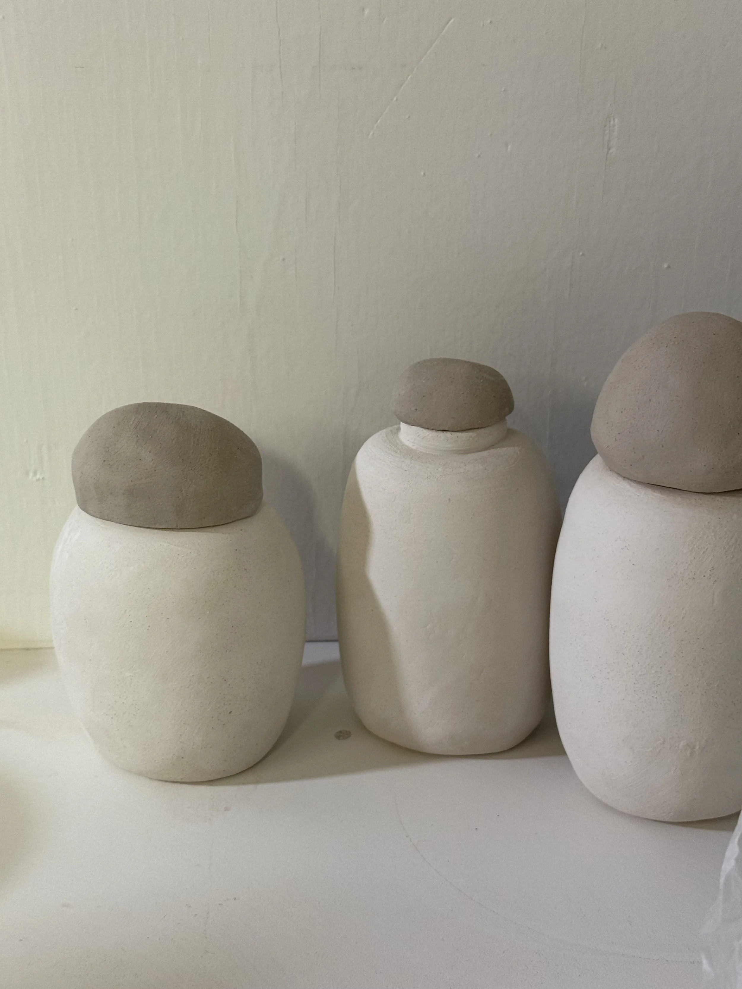 We often think of containers as an intermediary receptacle utilized to hold, organize, or transport other objects. While these lidded vessels do not hold any physical objects, they record and retain the story of their origination. They serve as containers of spirit and memory; a physical embodiment of oneself to exist beyond the body.